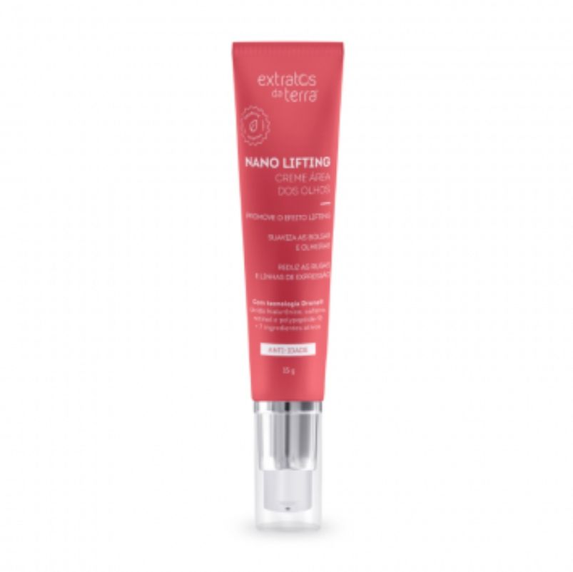 O Nano Lifting é um creme para a área dos olhos completo que age em diferentes tipos de olheiras e reduz os sinais da idade da região dos olhos como rugas, linhas de expressão e flacidez. O creme diminui as rugas e as linhas de expressão por aumentar o volume perdido com a idade, fazendo o preenchimento da pele de dentro para fora. Além disso, possui ingredientes que provocam a contração das células mais superficiais da pele, promovendo um efeito lifting imediato na área dos olhos. Para melhorar a aparência da pele, o creme conta com uma combinação bem estruturada de antioxidantes e anti-inflamatórios que reduzem os radicais livres responsáveis por provocar o envelhecimento, as olheiras e a formação de manchas escuras. No tratamento das olheiras, o creme age diminuindo o inchaço na região dos olhos e também a coloração escura decorrente de diferentes fatores que deixam a pele com aparência cansada. Também melhora a microcirculação e a oxigenação, trazendo mais vitalidade e luminosidade para a pele. Nas olheiras mais fundas, o creme promove o preenchimento local, diminuindo a depressão dessa área e deixando a pele mais uniforme e lisa. O creme conta ainda com a tecnologia Drone® de última geração na entrega de um blend de ingredientes como ácido hialurônico, cafeína, fator de crescimento e retinol até o local exato em que esses ativos devem agir. Dessa forma, o produto tem ação muito mais rápida e eficiente. Além disso, o creme faz com que a pele fique com um toque sedoso, aveludado e seco, sem deixar uma textura pegajosa ou aspecto brilhante na pele. Ao mesmo tempo, forma uma película invisível e protetora que mantém a hidratação e protege a pele sensível da região dos olhos das agressões externas e da desidratação. É totalmente seguro para uso nessa região, pois a textura do produto foi desenvolvida para uma aplicação sem risco de escorrer. Não causa ardor ou irritação na região segundo os testes dermatológicos e oftálmicos, garantindo toda a segurança para uso do produto
